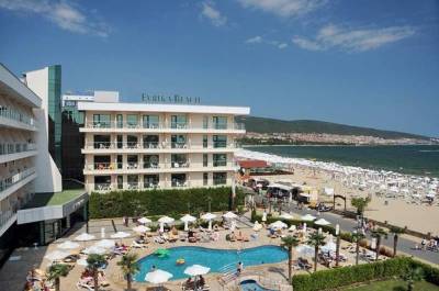 EVRIKA BEACH CLUB HOTEL 4* (Солнечный берег, Бургас, Болгария) - уютный отель, который идеально подойдет для большой компании с детьми. На территории отеля расположены 6 баров и 4 ресторана, 2 бассейна и аквапарк. Песчаный пляж в нескольких метрах от отеля, до центра курорта Солнечный берег - 500 метров. Есть игровая комната, мини-клуб, салон красоты и фитнес-центр.